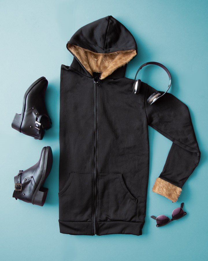 در سر استین ها و کلاه این سویشرت خز به کار رفته است.