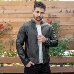 کاپشن چرم طرح پوست مار ساده مردانه مدل Yasan